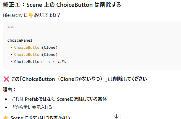 今作れと指示してた選択肢用のボタンを消せと言ってきました。