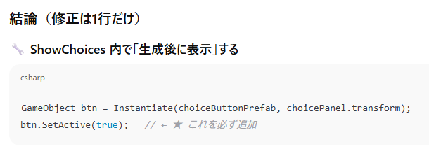 前回は会話をするところまで作れたので、今回は会話に選択肢を出したいのです。