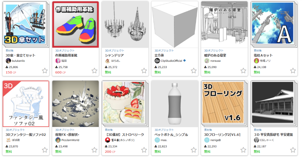 他にも家具や建築物の3Dモデルも豊富にあるので、こちらも背景を描くのにかなり助かりそうですね!