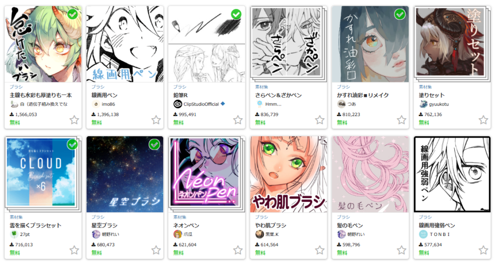 当然、絵を描く時に欲しい機能や素材がてんこもりです。