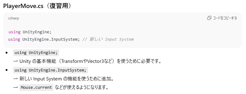 ChatGPTに少しずつコードの意味や内容を教えてもらってゆる~く勉強してます。