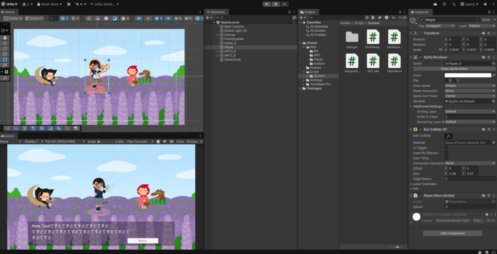- クリックでNPCの近くにプレイヤーを移動させる→会話開始