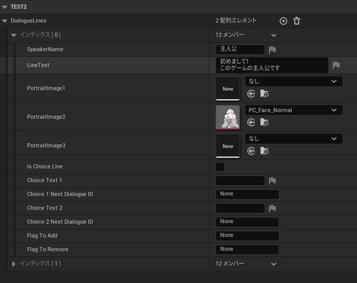 - 選択肢を選んだ時に次に飛ぶ会話のID×2